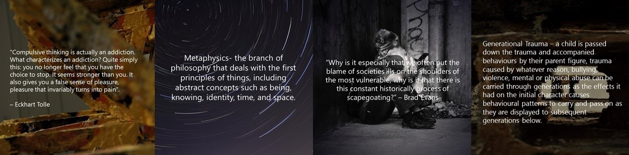 And the second is the accompanied social media projects which aim to create, share and promote the content that has lead me to my beliefs or at the very least has offered me a new light on certain matters and I believe is worth sharing with the world… Content that I believe is important and impact-full in creating an adaptive, well-rounded mindset withing individuals including; quotes, podcasts, facts, statistics, definitions, ideas, watching recommendations, book reviews and key character breakdowns.